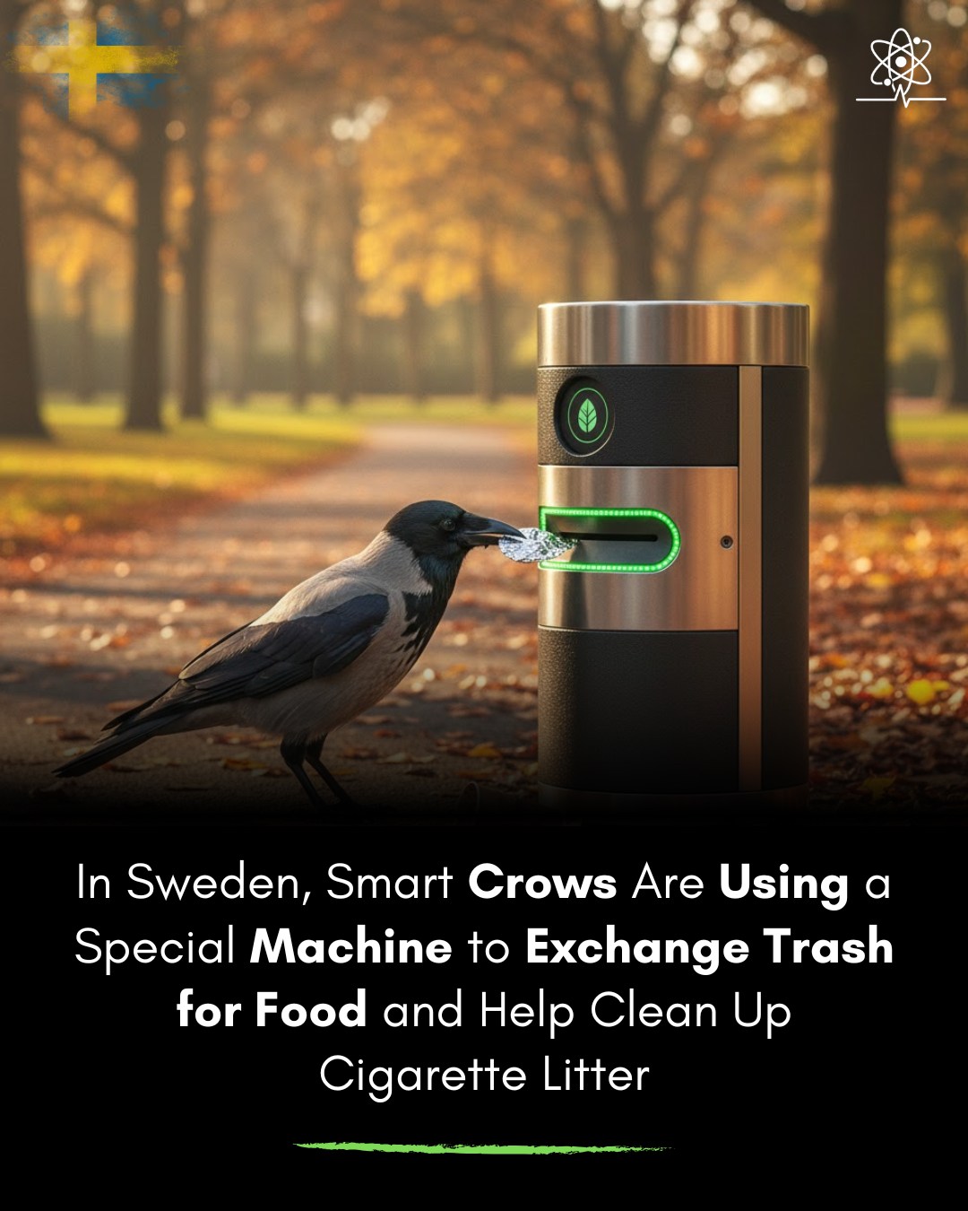 Corvid Cleaning is a start-up that began its journey in the city of Södertälje. The organization designed a machine that will reward crows after they retrieve and deposit cigarettes in a device designed by the founder. The enterprise is exploring the possibility of cleaning up litter by working with crows. The company, Corvid Cleaning, believes that their device can save city costs while cleaning up unhealthy and unaesthetic garbage.