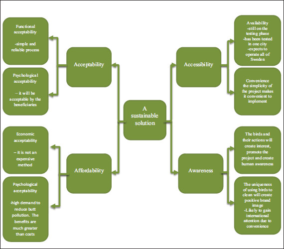 This project offers all elements of why it would be accepted if successful in achieving its goal. Corvid Cleaning can replace expensive and complicated methods of reducing cigarette butt pollution. Corvid Cleaning can be set up through government bodies or individuals, as well.